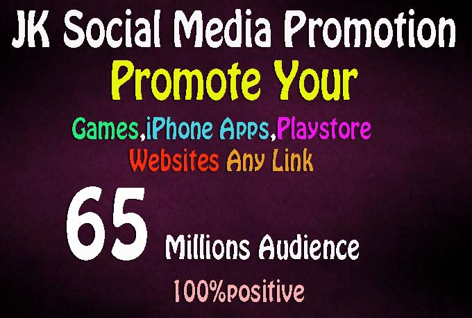 I will promote your apps to the right audience and at the right time. With my Advertisement Service, I will do the hard work for you. My social media experts will drop your apps to social communities Google+Facebookand ensure you get traffic from with over 65million Audience for your Games,iPhoneapps, Play store,website,any link,etc