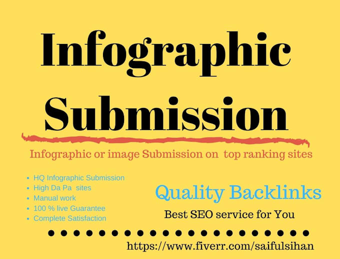 *****Welcome to my Gig*****Infographics or image submission is an important for website ranking, if you want to take your site to high rank on google you need must give your infograph or image submit in high Da pr sharing sites,create backling. As a SEO expart i will give you a quality service for you.