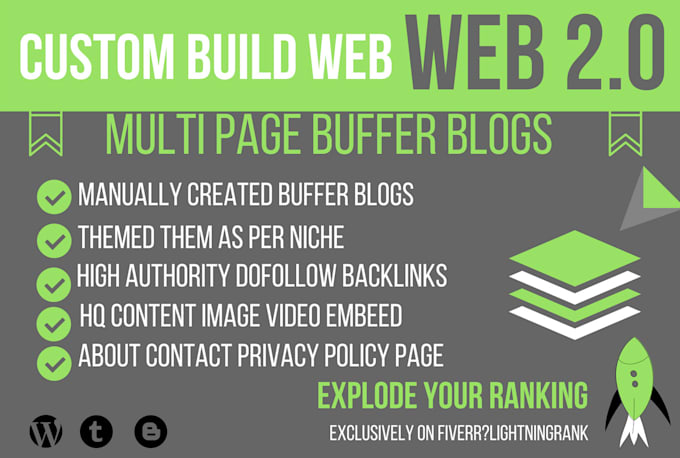 I will custom 10 web 2,0 buffer blog properties with login, dofollow backlinks