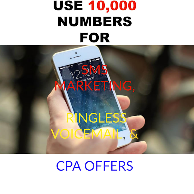 You will receive 10000 REAL cell phone numbers from any city, country, or area. These mobile numbers are active and live and can be used to make money with SMS marketing, Ringless Voicemail Drops, and CPA marketing.