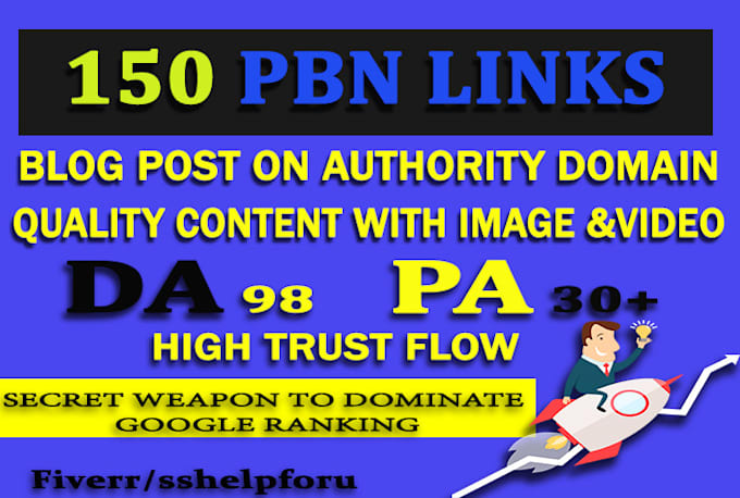 150 High Authority PBN Links On High Trust Flow Sites Will Be Your Secret Weapon to Dominate Page 1 Rankings for Affiliate, Local and National Keyword Terms.